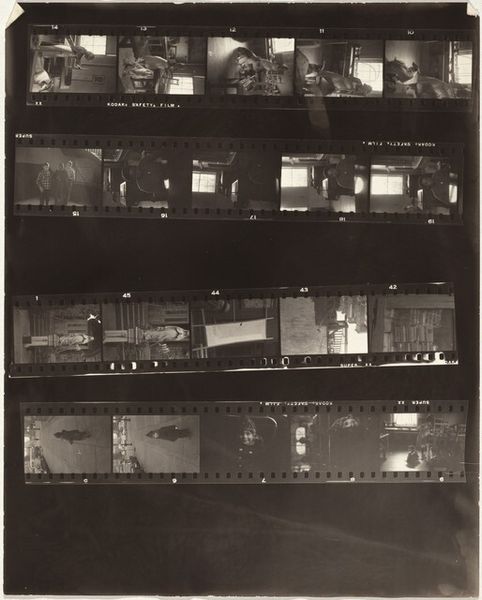 Robert Frank captured this image, "At Walter Gutman's—Long Island beatniks no number," using gelatin silver print, though the date of the image remains unknown. Frank, a Swiss-American photographer, became known for his raw, honest depictions of American life in the 1950s. This work, a series of frames from a film strip, offers us a glimpse into the intimate world of the beatnik subculture. The beat generation, with its rejection of mainstream values, explored alternative forms of spirituality, sexuality, and artistic expression. What we see here are private moments, hinting at the complex relationships and emotional states of these individuals. The grainy texture and informal composition contrast sharply with the polished imagery of the era. Frank's lens seems to seek out the unvarnished truth, challenging the glossy facade of postwar America. The use of the film strip format itself suggests a narrative, inviting us to consider the stories embedded within these fleeting moments. This photograph reminds us of the power of art to reveal the hidden corners of society and to give voice to those who exist on the margins. It is a poignant reflection on identity, belonging, and the search for authenticity.