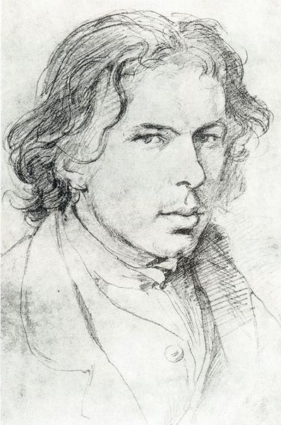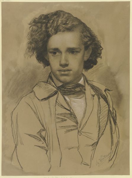 Editor: So, here we have a self-portrait by Dante Gabriel Rossetti, created in 1847 using pencil. I'm immediately struck by how intensely he's staring; it's like he's trying to see right through you! What do you see when you look at this work? Curator: He's certainly got that Romantic intensity, doesn't he? What jumps out for me is the almost tentative touch of the pencil, and yet, it manages to convey such a firm sense of self. It feels less like a confident declaration and more like a whispered question: "Is this *really* me?" Think about it: this is Rossetti before the Pre-Raphaelite Brotherhood really takes off. It’s almost as if he’s using this drawing to define himself, or even… conjure himself into being. Editor: That's interesting. It didn't strike me as tentative exactly, more…searching. Do you think the choice of pencil contributes to that feeling? Maybe something like oil paint would have felt more definitive? Curator: Absolutely. Pencil is so immediate, so easily erased or altered. It has this wonderful, ephemeral quality, perfect for capturing a fleeting moment, a shifting identity. Oil paints, by comparison, feel much more solid and…well, *permanent*. What does the word ephemeral mean to you? Does that capture what's going on for the artist here? Editor: Yeah, I think ephemeral feels spot-on. Like he's catching a glimpse of himself, rather than making a grand statement. I never would have considered how the choice of material really shapes that perception. Curator: Exactly! It's the whisper, not the shout, that stays with you. This portrait makes you wonder who Rossetti *wanted* to be, and maybe even who he feared he might become. Editor: I’m going to look at portraits totally differently now! It’s about more than just the face; it's about the medium, the era, and all the questions the artist is wrestling with. Curator: It is a kind of art alchemy, right? Rossetti turns simple materials into an enduring puzzle.