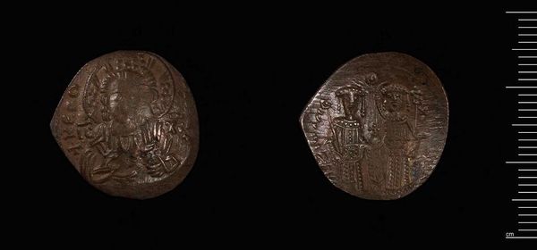 Curator: Here we have a Basilicon of Andronikos II from the Harvard Art Museums. Andronikos II, of course, was a Byzantine emperor. Editor: It’s got this compelling roughness, like an ancient fingerprint. It gives me a sense of the everyday human touch that's often missing in these kinds of historical objects. Curator: Absolutely. Currency in the Byzantine empire served as propaganda, communicating imperial authority and religious legitimacy. Editor: I guess it's a bit like a medieval tweet. It’s funny how something so small could carry so much weight in defining their world. Curator: And its circulation underscores how art, even on a coin, permeates society, shaping beliefs across economic strata. Editor: Exactly! It’s almost humbling, seeing how these little tokens, these artistic echoes from the past, keep speaking to us.