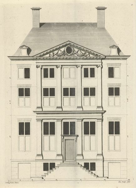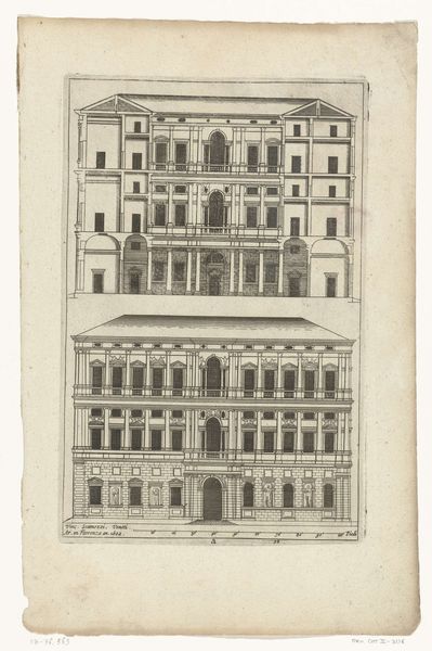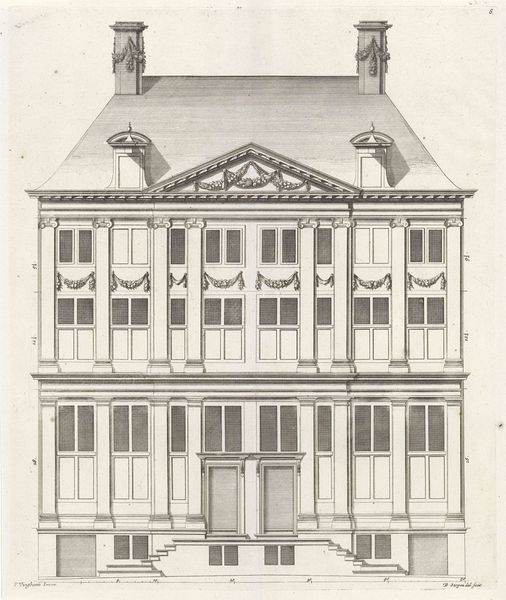 Editor: So, here we have Nicolaes Ryckmans’s "Elevation of the Façade of the Palazzo Nicolò Spinola di Luccoli in Genoa," created in 1622. It’s a detailed architectural drawing, quite austere, really. I'm struck by its symmetrical nature. What stories do you think this façade might tell? Curator: I see a potent visual statement about power and control in a rapidly changing world. Look at the rigid geometry and the sheer height represented in the drawing; consider its relationship to urban space, a deliberate assertion of the Spinola family's dominance within Genoese society. How might that relate to how the Spinola family participated in or resisted broader systems of inequality and privilege at the time? Editor: That’s a really interesting point! It seems very deliberate. All the elements of the building have their role to show stability and strength... The Spinola’s did that with purpose! Curator: Absolutely. We must also acknowledge how these structures became implicated in colonial networks, through the financing of expeditions and the exploitation of resources. In this sense, architectural representations become tools of cultural understanding but also potential instruments for the normalization of oppressive social dynamics. Does this change the way you see its "austere" quality now? Editor: Yes, that reframes it. I was only thinking about architectural beauty, but there’s this whole other layer related to how buildings represent social structures and global economics at that time. Curator: Exactly. Examining the art historical and socio-political implications together provides insight that helps challenge how power is displayed but also perpetuated. We can reframe what we think we know and rewrite history, one palazzo at a time. Editor: I’ll definitely be thinking about buildings in a new way going forward.