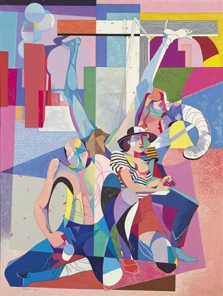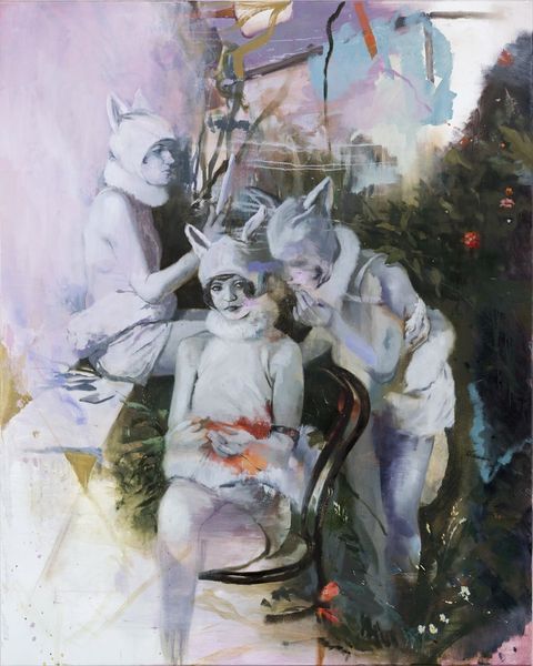 Editor: This is Peter De Francia's "Disparates (Omnia Vincit Amor)." It's undated, but the scale is impressive, over two meters tall. There’s a lot happening, it feels almost dreamlike, or maybe nightmarish. What do you make of it? Curator: It's a provocative composition. Note the classical bust juxtaposed with the animalistic mask and the title which translates to "Love Conquers All." De Francia seems to be dismantling traditional notions of power and beauty. How do you interpret the gender dynamics at play? Editor: It's unsettling, isn't it? I see a potential critique of the male gaze and the objectification of women, especially with the fragmented female form. Curator: Precisely. And consider the social context. De Francia was deeply engaged with political activism. Could this be a commentary on societal imbalances and the distorted roles we are forced to play? Editor: I hadn’t thought about it that way. It's much more than just a strange image. Curator: Art often serves as a mirror, reflecting and challenging the power structures around us.