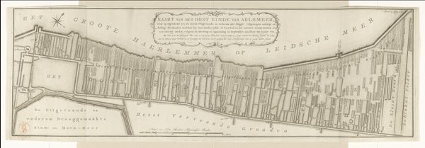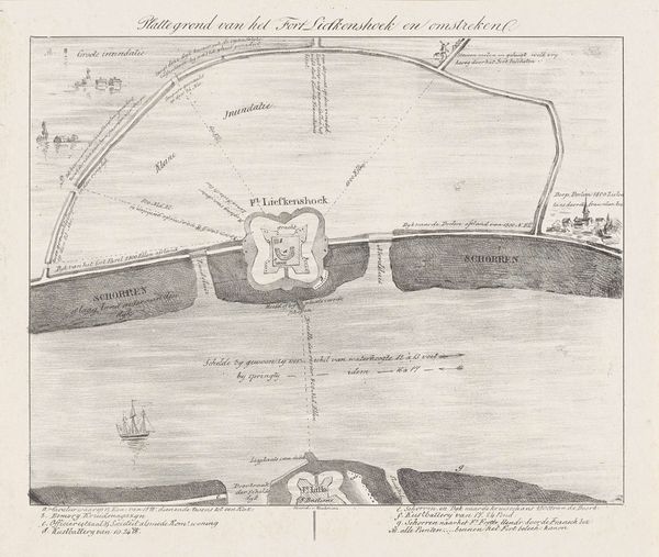Curator: Looking at this engraving, “Plattegrond van de vredesconferentie op het Île des Faisans,” created sometime between 1659 and 1695, what are your initial thoughts? Editor: It feels oddly...clinical. All lines and precise angles, a map devoid of any drama despite depicting the location of a pivotal peace conference. It’s a rather cold rendering, almost sterile. Curator: I find it fascinating how such a seemingly detached representation carries the weight of history. This island, the Île des Faisans, represented neutral ground for France and Spain. Look closely; it outlines the temporary lodgings erected for Cardinal Mazarin and Don Luis de Haro, key negotiators aiming to end their conflict. Notice the symmetry? It mirrors the delicate balance of power they sought to establish. Editor: The geometric layout you’re speaking about does impose a certain order. Almost as if attempting to impose order on what was very likely a tumultuous and fragile accord. And is that perspective shift purposeful, where everything is shown as if carefully planned. Curator: Precisely! Architecture, even temporary, serves as a powerful visual metaphor. Each room, designated with letters, and each line embodies an intention. Beyond functionality, it reveals the underlying power dynamics, each country afforded equal measure on the small island between them. The river flowing around becomes an encompassing symbol. Editor: Considering that prints were a primary method of disseminating information back then, this image functioned almost as propaganda. Solidifying an agreed vision of peace and amity... irrespective of the intricacies and compromise beneath the surface. Curator: Yes, disseminating not just information, but a very specific interpretation. I see this engraving as an early form of information management, crafting a visual narrative for a public hungry for stability and peace. Every precise stroke tells a silent tale. Editor: A chilly but revealing blueprint of political theater, frozen in time. It causes you to ponder just how curated history is as it goes forward. Curator: A visual record indeed—one reminding us that symbols and spaces can both reveal and conceal, shaped as tools within their cultural moments.