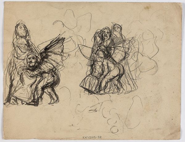 Editor: So, we're looking at "Studieblad met vijf hoofden" – Study Sheet with Five Heads – created between 1776 and 1815 by Marie Lambertine Coclers, using ink, pencil, and other drawing materials. I find the rough quality quite appealing; it has this very intimate, sketchbook feel to it. What's your take on it? Curator: The intimacy is key. Think about the social context of art academies at that time. Drawing studies like this weren't necessarily meant for public display. They represent the artist's private labor, a critical stage in mastering the representation of the human form. Consider the role of academic training; how did institutions shape artistic production and taste? Editor: That's interesting! So, this wasn’t meant to be a finished product. It was part of her learning process? I see the faces are all slightly different. Curator: Exactly! And that variety is important. Look at the range of ages and expressions. It points to the artist’s engagement with realism but also potentially reflects the societal roles assigned to different figures. Notice the head coverings – what do they signify about the subjects’ social standing or occupations? Editor: I hadn’t thought about the head coverings. I guess they aren't just stylistic choices; they carry cultural meaning. So by practicing portraits in this way, the artist is engaging with both the artistic conventions and the social conventions of the time? Curator: Precisely. These 'Study Sheets' became tools of empowerment. Understanding how such artworks participated in – or perhaps even subtly challenged – the prevailing socio-political landscape is the first step towards seeing art with fresh eyes. Editor: I never considered art training could be such a complex reflection of society. Thank you. This has broadened my view considerably. Curator: Likewise. Thinking about art's function in culture makes us better viewers and contextualizes artwork more deeply.