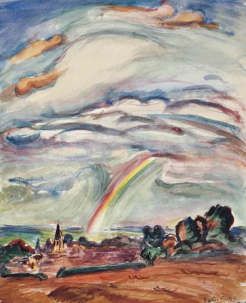Boris Kustodiev made this painting, Horses in the Storm, with oil on canvas. The clouds are rendered with these big, almost cartoonish daubs of blue and white, like he’s piling the sky up in scoops. I love that, the kind of carefree, almost slapdash way he’s making marks. And look at how the rain is just these vertical streaks, all blurry and drippy. The paint isn't too thick, but you can totally see the brushstrokes. It's like he wanted you to know this was made by a human, not just some perfect, slick surface. There's this one spot, right above the horses, where the light is breaking through the clouds. It’s just a few strokes of peachy-yellow, but it brings the whole painting to life. Kustodiev reminds me a bit of Marsden Hartley, with that same bold, kind of folk-art sensibility. It's like they're both saying, "Hey, art can be messy and still be beautiful."