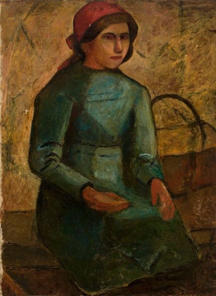 Editor: So here we have Jules Breton’s "Little Girl Eating Cherries" from 1876, oil on canvas. There’s something really pensive about it. She's caught between the light and shadows... It's quiet, almost melancholy. What pulls you into this piece? Curator: It whispers to me of simpler times, but like memory, tinged with the golden haze of nostalgia and a hint of something harder. Notice how the rough impasto of the wall clashes against her smooth skin, it reminds us that even idyllic scenes have an undercurrent of labor, a cost. She's savoring that cherry, almost defiant, as if claiming a small joy for herself. It’s Breton painting more than just a portrait, it's a stolen moment, a whole world, if you let it bloom in your mind's garden. What do you feel when you consider the colors, that almost sepia-toned dreamscape? Editor: I see what you mean! I hadn’t thought of that tension. It also makes me consider that the artist used a subdued palette, aside from the little red details that create contrast and impact. It seems more realistic than idyllic now that I am looking closer... Is there more to the context of the artwork that made this painting so poignant for the time? Curator: Perhaps. The late 19th century was obsessed with an idealized version of peasant life, wasn't it? Breton, though rooted in Realism, taps into this fantasy too, this yearning for an escape from industrial life. Her bare feet speak of connection to the earth. Consider: is she actually enjoying the cherries or just posing with them? Editor: Hmm… Interesting point about the pose. It definitely makes you wonder if that is her real emotion or simply a projected impression from the painter! Curator: Exactly! And isn’t it in those delicious doubts, those questions that paintings come alive? The best art leaves a crumb for the viewer to follow and form their own conclusion... A portal. Editor: I hadn’t considered all of that, so thank you, this was definitely a valuable look into not just the work itself but how viewers impact what an artwork can be! Curator: The real art, my friend, is the conversation *we* have, spurred by what an artist puts on canvas!