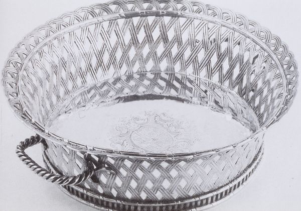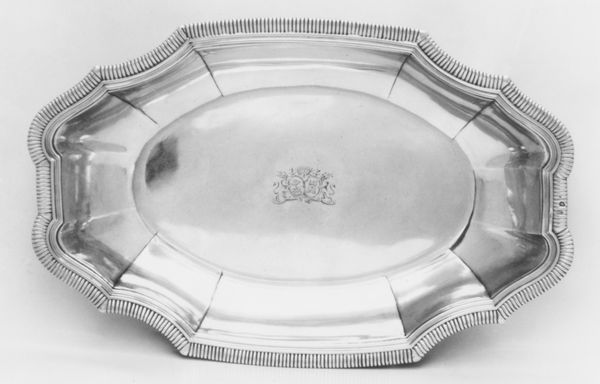 Curator: Before us gleams the “Serving plate from the Williams-Wynn service,” crafted in 1773, now residing here at the Minneapolis Institute of Art. It’s the work of the renowned Robert Adam. Editor: It’s extraordinarily reflective! The eye is immediately drawn to its circular form, the play of light across its polished surface. The meticulous border catches the eye too; it's a symphony of repeated patterns. Curator: The plate is fashioned from silver, a material chosen for its inherent value but also its capacity to embody elegance and status. Consider the societal context: in 18th-century Britain, the acquisition and display of silver were potent declarations of wealth and refined taste. Editor: Indeed. But let's delve deeper into the making itself. Silverware production at the time demanded intense physical labor. Artisans meticulously hammered, shaped, and polished the metal. This plate isn't just an object; it's a testament to skill and an expression of class hierarchies. One can almost imagine the silversmith, carefully etching the details into the design, following the latest tastes of the time. Curator: Precisely! Look closer, and observe the formal elegance in its design. The plate adheres to Rococo principles. The symmetrical composition, curvilinear shapes, and classical motifs like repeating beadwork all exemplify the sophisticated vocabulary that Adam popularized. Editor: What interests me further is how the materials, in their raw state, became an object of social performance and wealth. Think about the mines, the refining process, and the transportation—each stage relying on labor, exploitation, and global trade networks. And now, its sits in the white gallery so still! Curator: From my perspective, this plate speaks of balance and refinement. Adam masterfully fuses functionality with aesthetic principles, creating an object that pleases the eye. I read a deep intentionality, and even beauty, in its pure shapes and form. Editor: Ultimately, a deceptively simple form that holds a complex world within. Its gleaming surface is only the veneer atop material and labor! Curator: A final assessment, then, reflecting divergent but compatible ideas.