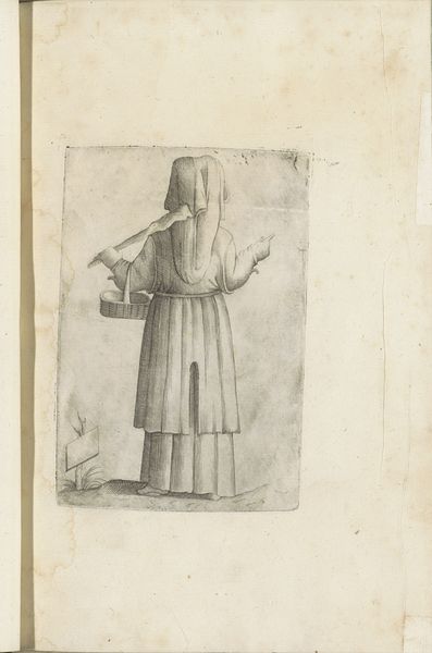 This drawing, made by Ferando Bertelli, depicts a woman seen from the back. The woman's dress is quite peculiar. She is wearing what looks like a pleated or ribbed corset on her back, evoking a time of elaborate and restrictive fashions. The image might reflect the social constraints placed on women, literally shaping their bodies to fit certain ideals. We must remember that the Renaissance and Early Modern periods were times of great social hierarchy, and clothing was an important marker of status and identity. To truly understand this image, one might explore fashion history archives, period literature, and social commentaries. By examining these resources, we can grasp the cultural values and power structures that shaped not just the clothing, but the lives of the women who wore them. The meaning of art, as we see here, is profoundly rooted in its social and institutional context.