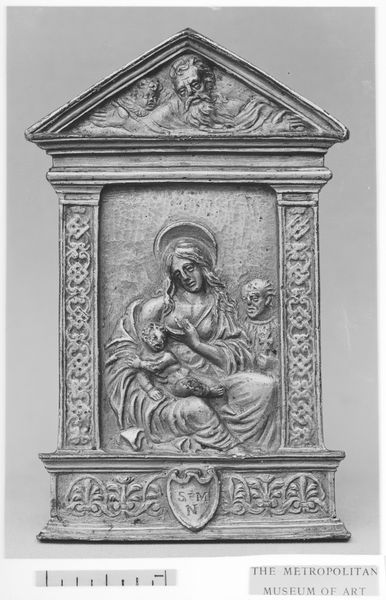 Donatello created this “Virgin and Child” from terracotta in the 15th century. The monochromatic palette immediately directs our attention to the artist’s technical skill. The composition is framed within a Gothic arch, softened by the figures and the use of soft carved lines. Look closely at how Donatello models the folds of Mary’s drapery and the tender embrace. He masterfully uses depth to evoke both physical closeness and emotional intimacy, which speaks to the humanist concerns during the Renaissance period. The linear details combined with the three-dimensional forms contribute to the work’s expressiveness. By studying how the artist manipulates form and space, we gain insight into the cultural values of devotion and humanity during the Renaissance. The artwork invites ongoing re-evaluation within contemporary dialogues about representation and devotional art.