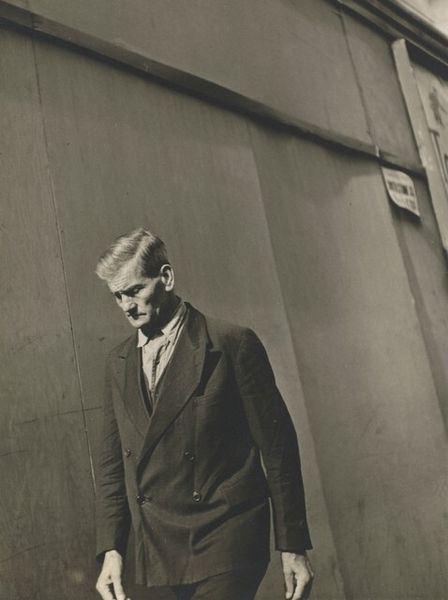 Curator: This is Alfred Stieglitz's gelatin silver print, "Charles Duncan," taken around 1920. Editor: Wow, there's such an incredible, melancholic stillness to it. The tonal range makes it look as though it's emerged out of some dream, almost. It feels introspective, sad even, like peering into someone’s quiet despair. Curator: That feeling really resonates with Stieglitz’s whole approach to portraiture; he wasn't merely documenting appearance. This modernist exploration attempts to get at something deeper, the essence of the sitter, their psychological space rendered visible. Editor: The soft focus is certainly working hard, diffusing the sharp details. The man's gaze is so direct yet unfocused; it creates this wonderful ambiguity, this sense he’s simultaneously present and absent, you know? And the way he’s holding the pipe – almost reverentially – adds to that whole mood. Curator: Consider how carefully Stieglitz has composed this too. Duncan’s positioned quite centrally, symmetrical, almost staged, you may argue, but this simplicity is, perhaps, intended to bring attention to the psychological rather than material factors. Editor: Absolutely, and it's this intense focus that actually invites more questioning, doesn’t it? I feel compelled to know who this man is, what he's thinking, what occupies his time and affections. There’s an intriguing narrative that, to me, seems locked away, like a little time capsule. It gives such an incredible resonance to the print, wouldn't you agree? Curator: Definitely. It highlights the power of photography to, yes, immortalize a moment in time, but more importantly, to trigger deeply empathetic, speculative reflections within the viewer long after. A single photo, almost a century old, managing to evoke so many emotional echoes is pretty powerful if you think about it. Editor: I find that beautiful.