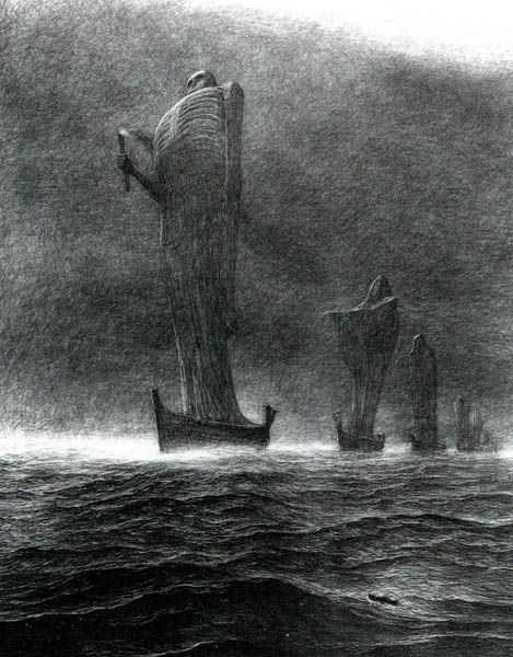This untitled artwork was created by Zdzislaw Beksinski using graphite on paper. Here we see the stark image of a boat, lost at sea with a lone figure draped in cloth, and it is the graphite that truly sets the tone. The soft, granular nature of graphite allows for subtle gradations of tone and texture, which imbue the scene with an eerie atmosphere. Beksinski masterfully layers graphite to evoke a sense of foreboding. The graphite mimics the misty atmosphere, giving the impression of a reality that is both tangible and ephemeral. The use of graphite also emphasizes the act of drawing itself, a slow, deliberate process that mirrors the solemnity of the subject matter. The choice of a humble material like graphite serves to highlight the artist's skill in transforming the mundane into the extraordinary. In this case, Beksinski shows us that it doesn't take much to evoke powerful emotion, and that this is more than just a drawing, it's a demonstration of the artist's craft.