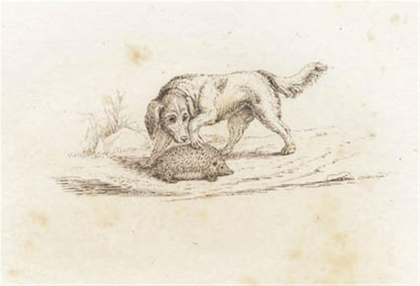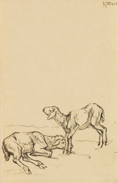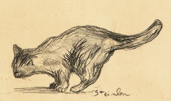 Editor: So, this is Thèophile Alexandre Steinlen’s "Study of a Puppy," a graphite drawing. It’s… kind of charming, in a rough, unfinished way. The puppy looks both scruffy and sweet. What stands out to you about it? Curator: The immediate warmth this image evokes lies in its domestication of the ‘wild.’ Historically, dogs have served as potent symbols. Can you think of any examples where they might represent something beyond just companionship? Editor: Hmm, well, sometimes they symbolize loyalty or protection, right? Or even guide the dead...like Anubis. Curator: Precisely! Consider then Steinlen’s context. Living in Montmartre, surrounded by the energy and anxieties of a rapidly changing Paris, he captured the soul of modern life. This puppy, sketched with such immediacy, embodies innocence and vulnerability, especially poignant within that bustling urban landscape. Editor: So, the puppy isn’t just a cute dog; it’s a stand-in for something larger? A commentary on the times? Curator: Potentially. Notice how the sketch emphasizes softness and fragility, a visual contrast to the harsh realities often depicted in Steinlen’s social commentary. It is tempting to ponder, whether intentionally or subconsciously, that the symbol of an innocent animal is being used to expose the darker themes in society. Editor: That makes me see it differently. I initially focused on the technique, but the symbolic weight makes it more compelling. Curator: And how remarkable that such deep concepts are suggested using only simple pencil strokes. Editor: Yeah, it is a nice reminder about what's hiding in plain sight. Thanks!