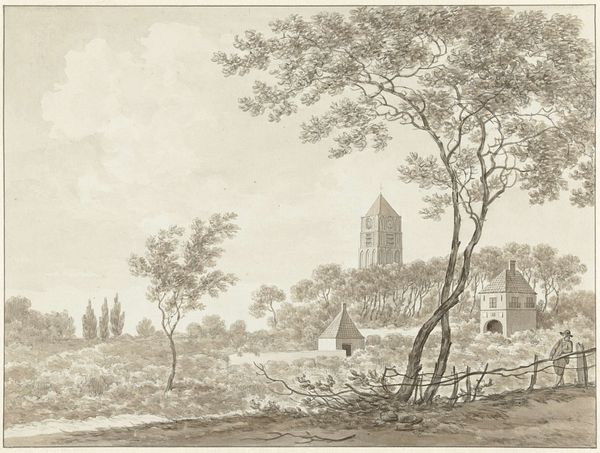 Daniël Dupré rendered this drawing of the Ruins of the Huis ter Lee or ter Lynden, on the Rhine near Rhenen, using pen and brush in brown and gray ink. The image depicts a ruined castle, a pastoral scene with grazing sheep, and a shepherd resting under a tree. Consider how the ruins evoke a sense of the past. It invites reflection on the passage of time and the impermanence of human creations. During Dupré's time, the Dutch Republic was undergoing significant political and social changes. The ruins might symbolize a reflection on lost glory and the shifting tides of power. Note how the shepherd blends into the scene. His presence might represent a connection to the land and a continuity of life amidst decay. The artwork serves as a reminder of the cyclical nature of history, where rise and fall, creation and destruction, are inevitable parts of the human experience.