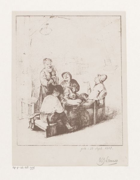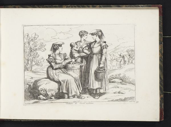 Bartolomeo Pinelli captured this intimate family scene from Ponzano Romano in an etching. Notice the mother, depicted mid-action, spinning wool, while a child rests in a cradle adorned with a cross and the letter "M." The spinning of wool, a seemingly mundane task, is laden with symbolism. Since antiquity, spinning has represented fate, creation, and the passage of time. Think of the Greek Fates, the Moirai, spinning the thread of life, or even Medieval domestic scenes where the spinning wheel embodies feminine virtue and industriousness. Here, the cross and the 'M' on the cradle suggest Marian devotion, intertwining themes of motherhood and divine protection. This evokes a potent emotional landscape, where everyday domesticity meets deeper, ancestral meanings. Consider how these simple images tap into our collective memory, conjuring feelings of safety and the cyclical nature of life. It is a powerful illustration of how symbols endure, transforming yet retaining their core essence across cultures and epochs.