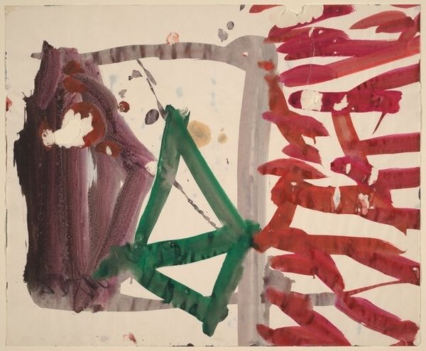 Franz Kline made this untitled painting with paint on paper. Looking at it, I feel like it's all about the energy of the strokes. See how the colors aren't blended but exist as distinct marks? The green is a vibrant, almost electric jolt, playing against the more subdued purples and browns. There’s a real physicality to the application, like each stroke was laid down with purpose, a record of a specific moment. The white of the paper isn't just background; it actively shapes the composition, pushing forward, creating a dynamic push and pull. It’s not hard to imagine the artist in the process of painting. It reminds me a little of Philip Guston’s more colorful, later work, but with a different kind of anxiety. Both, though, show us how art can be about the raw act of making, where the process is laid bare for us to see and feel. And, of course, to interpret, question, and engage.