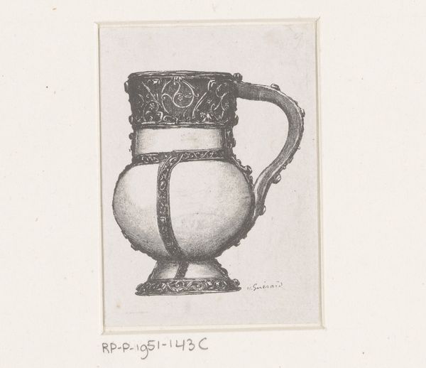 Henri-Charles Guérard rendered this “Antique Jug” using etching and aquatint in the late 19th century. Guérard emerged during a period of rapid industrialization and social change in Europe. His work engages with a renewed interest in classical antiquity, fueled by archaeological discoveries and a desire to reconnect with a perceived golden age. This piece invites us to consider the complex relationship between past and present. The jug itself, rendered in delicate lines, speaks of ancient civilizations, while Guérard's artistic approach is decidedly modern. The monochromatic tones evoke a sense of timelessness, blurring the lines between the object's historical context and its contemporary interpretation. What does it mean to look back at the past through the lens of the present? How does our understanding of history shape our identities and aspirations? In Guérard's “Antique Jug” we can find a moment of reflection.