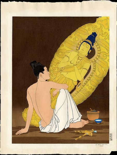Editor: "Le Printemps," Spring, by George Barbier, made sometime between 1922 and 1926. It's stunning! It almost looks like an illustration from a fashion magazine, very elegant, and a little... otherworldly? The figures are posed so dramatically, surrounded by soft, almost dreamlike scenery. How do you interpret this work? Curator: "Le Printemps" perfectly captures the Art Deco era's fascination with both classical allegory and modern design. Consider its context: coming out of the devastation of World War I, there was a longing for beauty, luxury, and a reimagining of societal roles. What strikes you about the women depicted? Editor: Well, their stylized features and elaborate outfits definitely stand out, but they feel a bit removed, almost like statues. It’s like they're presenting spring rather than experiencing it. Curator: Precisely! They embody the "new woman" ideal emerging in the 1920s. Fashion became intertwined with social progress. Note their slender figures, short hairstyles, and sophisticated attire—signs of a move towards modernity, all presented in a way accessible to public imagination. The controlled artificiality reflected broader shifts in social behavior and presentation, with makeup and careful grooming playing important roles in visual identity. Do you think it promotes social commentary or does it simply reflects the style? Editor: That's interesting! I hadn't considered it in relation to the "new woman." It seems almost too pretty to be critical. It’s aspirational, I think. Curator: Indeed, its power lies in embedding new social identities within appealing, beautifully rendered imagery. Barbier creates a vision where progress feels luxurious and attainable, influencing perceptions and normalizing evolving societal norms, one fashionable illustration at a time. Editor: I see that! I walked in thinking this was "just" pretty and fashionable, but now I realize how many different messages could be perceived by different audiences. Thanks for highlighting that! Curator: A pleasure! Analyzing art through its historical and cultural influences allows us to uncover fascinating connections between art and social progression.