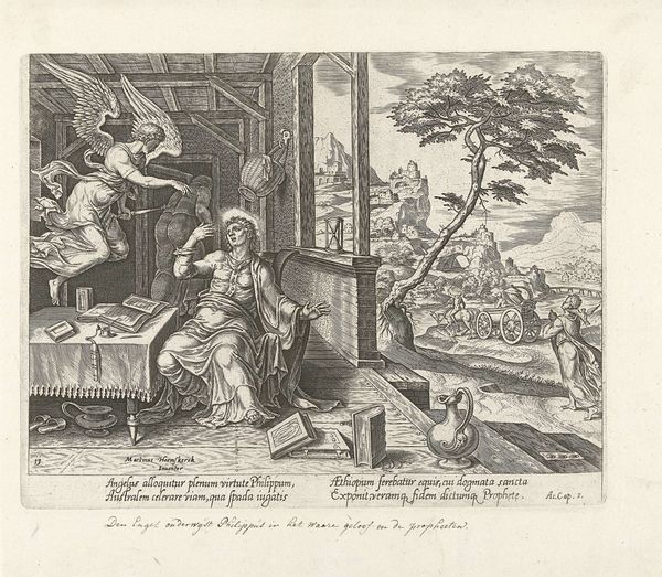 Cornelis Schut created this etching, "Schommelend kind," which translates to "swinging child," during the 17th century, a time when the Dutch Republic was a major center for trade, science, and the arts. This print depicts playful putti, chubby male children often found in classical art, engaging in leisurely activities. One swings, another stands holding the swing ropes, and two embrace while eating grapes. While seemingly innocent, these images were often commissioned by wealthy patrons to signal their knowledge of classical antiquity, as well as their social status. The cherubic figures evoke a sense of abundance and carefree existence, a visual representation of the patron’s own prosperous life. But beyond the surface of pure enjoyment, it's important to consider how these idealized images, while seemingly timeless, also reflect specific cultural values and class distinctions of the time. While Schut’s etching appears to celebrate universal themes of play and affection, it invites us to reflect on who had access to such carefree moments, and who was excluded.
