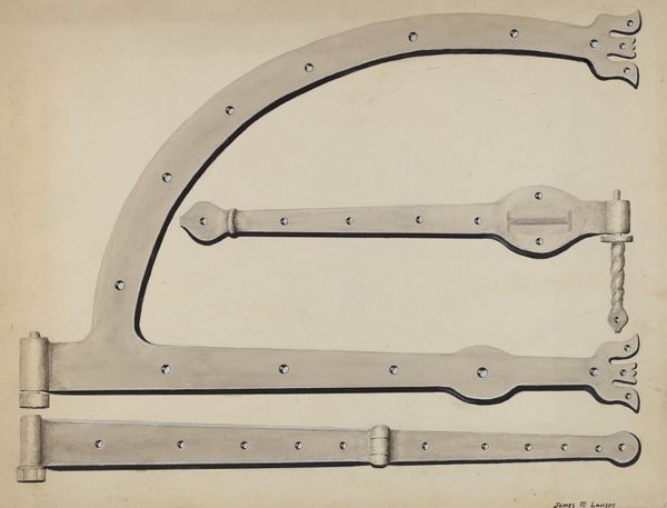 This is Mathieu Lauweriks' design for a compote spoon, rendered with pencil on paper. It's not just a blueprint; it's a moment of creative problem-solving, laid bare. I’m drawn to the raw, almost scientific approach – the careful lines, measurements, and annotations. But it's the imperfect edges and visible process that give it life. Notice how the spoon's bowl is softly shaded, giving it depth? It's a tactile invitation, hinting at the cool smoothness of metal, the gentle curve designed to fit just so in your hand. This isn't just about function; it's about an intimate connection between maker, object, and user. The ghost-like second spoon hovering above is almost like a pentimento, a trace of an idea being worked through, an echo of the artist’s process. Think of Josef Hoffmann’s metalwork, or perhaps even some of the Bauhaus metal workshops – there’s a similar emphasis on clean lines and functionality that transcends mere utility. To me, this drawing says that even the simplest object can be a site of quiet contemplation.