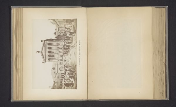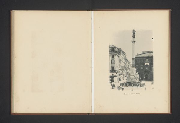 This is an anonymous photograph of the Forum of Trajan in Rome. The black and white image is printed on paper and bound in a book. Photographs like these were made possible through the development of photographic technologies and chemical processes in the 19th century. This one is a reminder of the way images could be mechanically reproduced and disseminated, a precursor to mass media. What you're seeing is less an individual artwork and more a product of industrial advancement. Consider the labor involved in capturing and producing this image. From the anonymous photographer who framed the shot, to the factory workers who prepared the photographic paper, and the bookbinders who assembled the volume, each contributed to the final product. The image's value lies not only in its aesthetic qualities, but also in its representation of the industrial processes that enabled its creation. When we look at this photograph, we're prompted to consider the social and economic forces at play in its making. It’s not just a picture, but a document of a particular moment in the history of industrial production.