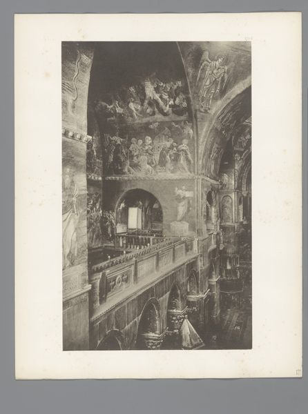 Giorgio Sommer captured the Interior of Chiesa di San Martino in a photograph with dimensions of 251 mm by 182 mm. The image is defined by its play with perspective and light, drawing you into the depths of the church. The photograph meticulously captures the architectural grandeur and ornate details of the church interior. Sommer's choice of perspective, shooting from a low vantage point, accentuates the height and scale of the interior space. This emphasizes the church's vaulted ceiling, adorned with frescoes. The composition is structured around the altar, which serves as the focal point. The use of light and shadow in the photograph helps to define the three-dimensional qualities of the space. The interplay between light and shadow creates depth, emphasizing the tactile qualities of the marble and the texture of the frescoes. The photograph presents a study in contrasts, inviting viewers to engage with the interplay between the structural and the decorative.