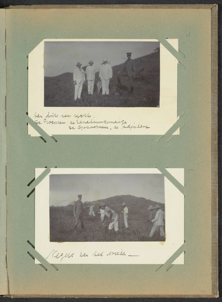 Here we see a black and white photograph by A.G.A. van Eelde, titled "Two European men and an Algerian man in the desert of Béni Ounif." The photograph's surface is matte, printed on what looks like thin paper stock, with a slightly blurred focus. This lack of sharp detail, paradoxically, adds to its allure, lending the image a quality of memory. Look at the way the three figures are arranged, almost staged. The two Europeans are dressed in suits, while the Algerian man is in traditional robes. Note the subtle gradations of tone in the desert landscape, capturing the play of light and shadow on the sand. Is this a record of an actual encounter, or something more constructed? Maybe it's both. This image prompts us to ask questions about the relationship between the viewer and the viewed, and about the power dynamics inherent in the act of representation. Like the images of someone like Rineke Dijkstra, this is art that invites questioning rather than offering answers.
