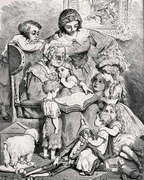 Curator: The scene is bathed in a warm light, which seems to give the whole situation a feeling of unreality—a soft, dreamlike quality. Editor: We’re looking at "Goldilocks and the Three Bears," an oil painting by Scott Gustafson. This genre painting encapsulates a key moment from the classic fairy tale. Curator: The bears are instantly readable, but there’s more at play here. There is such deep cultural anxiety embedded in fairy tales such as these. To me, that feeling radiates from the slightly askew faces of Papa Bear and Mama Bear. Their unease about a world unsettled feels very prescient. Editor: Precisely. Note how Gustafson uses varying textures to distinguish the bears’ fur from Goldilocks’s smooth skin, and then from the carved wood of the bed and rustic weave of the rug. The overall composition is stable—a pyramid with the bears forming the upper corners. Curator: Yes, the textures ground it, but then, consider the symbolic heft. The bear family serves as a clear representation of domestic security disrupted. The fact that Goldilocks is fair-haired and blue-eyed links to other fairytale damsels and Northern European folklore, alluding to innocence and vulnerability put at risk. Editor: Observe the contrasting color schemes, too. The muted tones of the bears’ clothing and fur, punctuated by small hits of brighter color, juxtapose with Goldilocks’ white nightgown and the patchwork quilt. Semiotically speaking, there is quite a divide in the color usage. Curator: These are not merely stylistic decisions. Each of those material items—a carefully sewn quilt, for instance—points toward generations of cultural transmission. They tell stories within stories, shaping how we relate to these characters, reinforcing communal memory, and informing childhood narratives. Editor: In this singular moment captured in oil paint, so many familiar structures are in place—literally building upon our memories and understandings of family dynamics as an artifice, as well as a source of both delight and disruption. It has truly opened up some new interpretive approaches for me. Curator: I see new ways in which domestic spaces serve as potent settings for intergenerational psychological dramas, encoded through folklore and accessible thanks to the language of art.