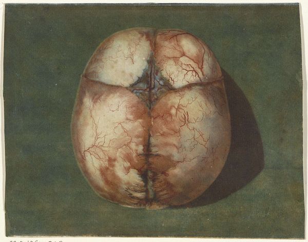 Around 1735 Jan l’Admiral printed several remarkable anatomical prints in colour, among others on commission for the celebrated physician Frederik Ruysch. For his illustrations of the cerebral membrane (the skull of an unborn child) and a human heart he experimented with ever different colours, and made various versions of them. The objective was to provide medical practitioners with the most precise and realistic images possible.
