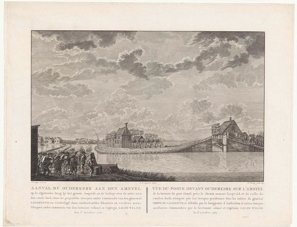 Theodoor Koning created this print of the ‘Attack at Ouderkerk on the Amstel on the broken bridge’ in 1787. It captures a moment of conflict during a period of political tension in the Netherlands. The image shows a military engagement, with soldiers advancing towards a broken bridge. This scene reflects the Patriot uprising, a movement seeking democratic reforms and challenging the power of the ruling House of Orange. Koning’s choice to depict this event suggests a commentary on the political turmoil of the time. The broken bridge symbolizes the fractured state of Dutch society, divided between the Patriots and the Orangists. To fully understand this print, one might delve into archives and pamphlets from the period, examining how such images were used as propaganda or as records of significant events. This artwork reminds us that historical context is crucial for interpreting art.