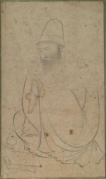 Editor: Okay, so this is "A Chinese God" by Alexandre Jacovleff, from 1918. It looks like it's done in maybe watercolor or pastel on toned paper? The figure is very still, regal…almost severe. What do you make of it? What jumps out at you? Art Historian: You know, it whispers stories, doesn't it? This feels almost like a half-remembered dream of the Silk Road. Jacovleff clearly had a deep respect for the subject; just look at the detail in that headdress! What I find compelling is that gentle wash of colour over what looks like a pencil underdrawing – the tonal range seems limited to create this wonderful serenity… Have you studied much Eastern iconography? Editor: Just a little. I’m familiar with some Buddhist art, but not so much with…well, 'gods' outside of that context. It definitely makes me think of religious icons. Does the…serenity you mentioned tie into that? Art Historian: I believe so. There is this wonderful blending of what is accessible through Jacovleff’s technique of drawing with a more reverent symbolic sensibility. The texture of the paper almost acts as the sand of a distant desert landscape...a backdrop to a forgotten story of a Chinese God! Almost meditative… Wouldn’t you agree? Editor: Definitely! I like how the imperfections almost seem to work _with_ the piece instead of against it. The muted palette adds another dimension, almost dreamlike. I can sense the artist wanted us to have some sort of personal understanding. Art Historian: Beautifully put! Sometimes it is about just being present and available. Every scratch, and imperfection can teach you so much... That's the wonderful gift of the art piece for each of us! It’s been an enlightening reflection for me to contemplate that sense of timeless mystery within what some might consider an ‘imperfect’ image! Editor: This was super helpful! I definitely see it differently now. Thanks so much!