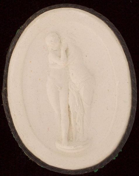 Editor: This is a tiny intaglio, "Sleeping Hermaphrodite, after antiquity", made by the Pichler family. I’m struck by how such a small object carries such a weighty, complex subject. What symbols do you see at play here? Curator: The figure, caught in slumber, evokes vulnerability. But "Hermaphrodite" itself is loaded; it speaks to a blurring of boundaries, a fusion of masculine and feminine. How does this subvert traditional ideas about identity? Editor: I never considered that! The figure, in its peacefulness, seems to challenge those strict divisions. It’s thought-provoking to see such concepts rendered in miniature. Curator: Indeed, it suggests that even in the smallest of forms, the most profound cultural dialogues can take place. Editor: This piece invites us to reconsider how we define ourselves, even today.