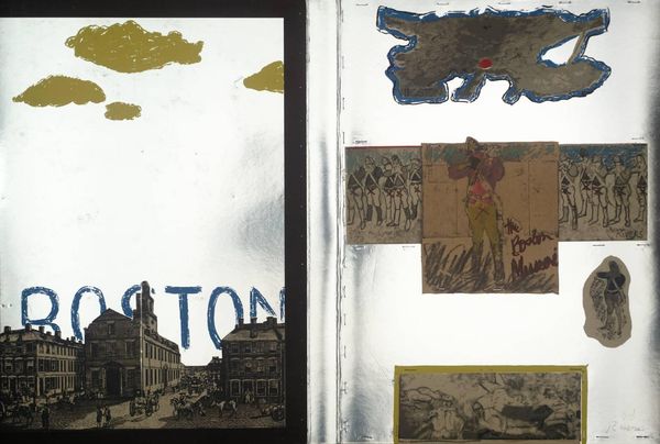 Curator: Rauschenberg's 2007 mixed-media work, "Untitled (Runt)," incorporates collage, photography, and what appears to be watercolor elements. What are your immediate impressions of it? Editor: Bleak, somehow. There's a certain post-industrial gloom to the imagery—urban grit elevated by a painterly abstraction. It evokes feelings of neglect and decay. Curator: Indeed. The juxtaposition of photographic images disrupts conventional modes of representation, highlighting the materiality of the components and the semiotic relationships between them. Editor: Exactly! The fragmented cityscape, dominated by utility—fire hydrants, scaffolding, and graffitied walls—reads as a visual commentary on urban infrastructure and the often-overlooked spaces of everyday life, exposing socioeconomic stratifications, really. Curator: Observe how the interplay of light and shadow and the geometric arrangements contribute to the image's internal structure, establishing an autonomous aesthetic system detached from any fixed meaning. Note the interplay of color and form and the textural contrasts... Editor: While those formal aspects are undeniable, the very act of "appropriation"—taking images from pre-existing contexts and re-presenting them—is politically charged. Rauschenberg inserts these objects into a new field of meaning, prompting us to consider the politics inherent within the construction and representation of the urban environment and reflect on urban blight and the socio-political drivers that render the modern city inequitable. Curator: Perhaps, yet focusing too intently on external referents risks overlooking the carefully orchestrated compositional structure within the collage itself. Look closely. Notice the diagonal thrusts of line throughout the arrangement and the subdued harmony between the green tones of the fire hydrants and the cherry picker... The surface plane shimmers from a network of considered marks and graphic intersections. Editor: Okay, I appreciate that, but these urban scenes speak volumes, too. We see the unsung corners of the cityscape laid bare... the textures of marginalized spaces take center stage, giving us insight into those experiencing urban neglect daily, shaping narratives about societal (in)attention. Curator: "Untitled (Runt)," then, is less about direct social commentary and more about the visual tensions produced via the artist’s interventions of recombining quotidian, found imagery into a space for complex formal relationships to take place. Editor: Perhaps it does both. Rauschenberg coaxes us into seeing how social inequalities manifest, visually, within the architecture of our cities. The artistic interventions may point at these relations obliquely, but effectively.