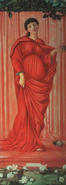 Here we see Edward Burne-Jones's painting *Temperantia*, a work steeped in the aesthetic and cultural values of late 19th-century England. The figure of Temperantia, or Temperance, is portrayed as a woman pouring liquid onto flames, which speaks to the Victorian era's complex relationship with women as symbols of moral restraint and control. The Pre-Raphaelite Brotherhood, of which Burne-Jones was a key figure, sought to revive the purity and simplicity of early Italian art, turning away from industrialization and societal change. However, this idealization often placed women in restrictive roles, emphasizing virtue and obedience. In this context, Temperantia embodies the era's anxieties about female sexuality and the need to control it. The painting can be seen as a reflection of how societal expectations were projected onto women. The painting's appeal lies in its visual beauty, but it also invites us to consider the cultural constraints and expectations placed on women during the Victorian era.