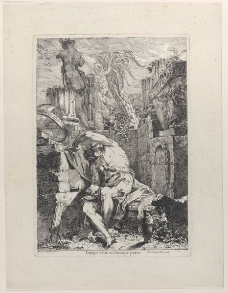 Editor: Here we have "Illustration til 'Kejserens nye klæder'," from 1895, an etching, engraving and print by Robert Neergaard. It's got such a darkly comic feel to it, this scene of sartorial delusion. What strikes you most when you look at it? Curator: It whispers of a delicious secret, doesn’t it? All those frantic gestures around an empty space. The illusion is the art. The composition leads my eye to the seated figure, the one not actively participating in the Emperor's charade. I wonder, is he in on the joke? Or just resigned to the follies of power? The details in the etching are incredible, so precise! Do you notice the ornate carving on the wardrobe compared to the simplistic posture of the characters? Editor: Absolutely, the wardrobe detailing is wonderfully done. It's almost mocking the simplicity of the Emperor's actual wardrobe... or lack thereof! Does Neergaard offer any clues as to whether this illustration should be taken at face value, just a bit of fun poking at the vanity of rulers? Curator: Well, art always leaves room for our interpretation, doesn’t it? To me, it’s a wink. A gentle reminder that seeing isn't always believing. That those in power often rely on our willingness to play along. Maybe Neergaard is inviting us to question the narrative, to find our own “clothes” of truth, as it were. Don’t you think? Editor: That’s a clever connection. It's made me think about the performance aspect, and who exactly is in on the joke. Curator: Indeed! It makes me think that art invites us all to get involved. It truly speaks to the magic in simplicity, that we should always consider our first perceptions.