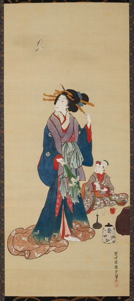 Yamaguchi Soken created "Young Maidens" using ink and color on silk during the Edo period. Soken, who lived and worked in Kyoto, Japan, dedicated himself to painting, producing works that often depicted women and children. Here we see three young women, likely courtesans, each embodying different facets of feminine identity within the confines of their world. One kneels, engrossed in a book, hinting at intellectual pursuits, while the others stand, adorned in elaborate kimonos that speak to their social standing and the expectations placed upon them. Soken delicately renders their pale faces and stylized features, capturing a sense of refined beauty. But consider the untold stories beneath the surface. What dreams and desires might these women harbor? What constraints do they face in a society that often reduces them to objects of beauty and desire? "Young Maidens" invites us to reflect on the complexities of womanhood in historical contexts, reminding us of the importance of empathy and understanding when engaging with art from different eras.
