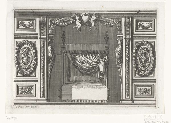 This tiny engraving was made by Abraham Delfos in the 18th century. Delfos was a Dutch engraver and publisher, and this print exemplifies his mastery of line. Notice the incredible level of detail achieved on such a small scale. The image is a vignette, a small decorative design, depicting a scholar in a library, contrasted with a scene of ships at sea. Delfos used a technique called etching, in which lines are bitten into a metal plate with acid, and then filled with ink to make a print. This process allowed for intricate detail and subtle tonal variations, evident in the delicate rendering of the books, the scholar's robes, and the turbulent sea. The contrast between the calm interior and the wild ocean beyond speaks to the expanding world of global trade and commerce, and the role of knowledge in navigating these turbulent waters. The scholar, surrounded by books, represents the intellectual power that drives exploration and economic expansion. The print, with its crisp lines and precise execution, embodies the values of the Enlightenment, emphasizing reason, order, and the pursuit of knowledge.