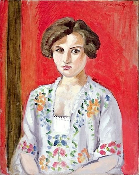 Henri Matisse painted "Girl in White with a Bouquet" with oil paint. The color palette—those oranges, greens, and pinks—feels like a warm, sunny day. You can almost smell the flowers. I find that a painting, in a way, documents a performance. The way Matisse layers the paint, thin in some spots and thicker in others, gives you a sense of his process. It's like he's thinking through the paint, letting it build up until it feels right. Check out that orange background. It’s not just flat; it’s got all these little brushstrokes that create a vibrant, shimmering surface. That particular area is just buzzing with energy, which contrasts with the girl's stillness. Matisse reminds me of Bonnard, both were masters of color and light, but Matisse had a boldness, a kind of directness. The painting embraces imperfection, reminding us that art is about the ongoing conversation between the artist and the canvas. It is in this conversation that ambiguity thrives, and fixed meanings dissolve.