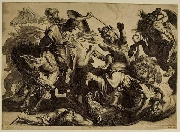 Editor: This is François Joseph Heim's "Defeat of the Cimbrians and of the Teutons by Marius," currently at the Harvard Art Museums. The scene feels chaotic and violent. What symbols or historical references do you recognize in this piece? Curator: Note the figures, frozen mid-flight, yet the symbolism evokes the unending cycles of triumph and despair. The classical garb, the idealized bodies… these are not mere historical representations, but echoes of a cultural memory, invoking Rome’s power. What emotions do these recurring visual cues elicit in you? Editor: I see a glorification of military might, but also immense suffering. Curator: Exactly. The artist plays with this tension, tapping into our collective understanding of victory’s cost. These visual symbols still resonate deeply, don't they? Editor: They do. I'll never look at a historical painting the same way again.