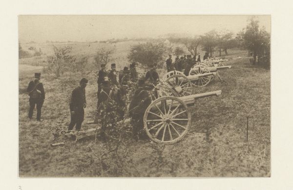 Editor: This is "Interior of Pehtang Fort Showing the Magazine and Wooden Gun, August 1, 1860," a landscape photograph by Felice Beato. It's printed with the albumen process. It feels heavy, weighed down by the ropes, the cannons, the very dust it seems to be coated in. What jumps out at you when you look at this work? Curator: You nailed that initial feeling. What strikes me is the staged quality. It’s almost a tableau vivant of war's aftermath, wouldn’t you say? The figures seem placed, not caught in action, and the light, oh, that hazy light! It washes over everything, softening the harsh reality I imagine was really present. Editor: Yes, they do seem posed. How does that posing influence its historical significance? Curator: Ah, there's the rub. Photography, then, was seen as truth. Beato, however, was a master storyteller. He’s not just recording; he's crafting a narrative, one that likely favors a particular view of the conflict – the Western perspective, I suppose? That softness, the ordered chaos, could be subtly manipulating the viewer. I mean, does it feel truly chaotic, or carefully constructed to evoke that feeling? Editor: Constructed, I think, which feels… a little manipulative now that you mention it. Curator: Exactly! And there's beauty even in the destruction. Think of the composition, the textures, the lines created by the cannons. The decay. Are we supposed to recoil in horror, or admire the photograph itself? That’s the unsettling power here, don't you agree? It lingers in the uncomfortable space between observation and interpretation, right? Editor: Definitely. I hadn’t really considered the photographer's perspective influencing the document itself. It's less straightforward than I initially thought. Curator: And isn’t that the beauty of art history? Peeling back the layers and seeing not just what *is* there, but also how it got there. Food for thought indeed.