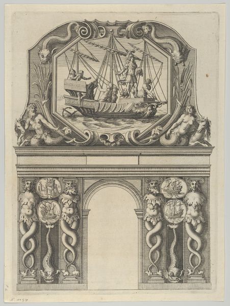 Editor: This engraving, titled "Verdedigingswerktuigen gemaakt door koning Uzzia (2. Kron. 16: 15)" and created sometime between 1710 and 1781 by Georg Lichtensteger, depicts some kind of old weaponry. I'm immediately struck by how meticulously detailed and ornate it is, even within the context of baroque art. How do you read the power dynamics represented here? Curator: It's a fascinating piece when considered through the lens of power. We see King Uzziah’s defense mechanisms – literal tools of war – yet they are presented within this very elaborate frame, which speaks to the intersection of power and artistry, defense and spectacle. This immediately asks the viewer to consider what social narratives and functions these tools serve in their specific historical and cultural environment. It isn’t simply about war; what kind of social statements were the makers trying to highlight at that time? Editor: So it's less about the mechanics and more about what it says about that era's view on defense and power? Curator: Precisely. How does technology reinforce or challenge existing power structures? For example, how might access to, or control of, these "Verdedigingswerktuigen," impact different social strata within Uzziah's kingdom? Are these accessible to everyone, or controlled by a specific demographic? And even further, who benefits from perpetuating the story and image of this defense? Editor: It’s interesting to think about who gets to control these tools and narratives surrounding them, and what impact it has on marginalized people. Thanks for bringing in these different angles of interpreting the print! Curator: Absolutely! Looking at historical objects is a conversation. By critically engaging with art's historical, social, and political contexts, we not only enrich our understanding of the past but also develop critical frameworks for the present.