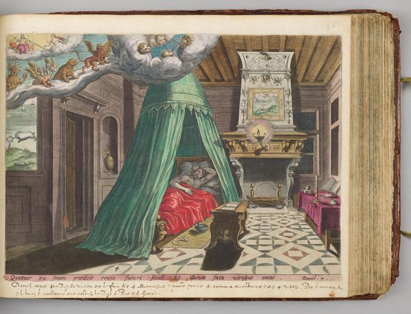 Editor: This is Saint Jerome, an engraving by Anton Wierix II. It seems to be from a book. I find the detailed interior setting really interesting. What can you tell me about the cultural context of this image? Curator: Well, depictions of Saint Jerome became increasingly popular as the printing press spread, furthering humanist ideals. Wierix presents Jerome as a scholar, surrounded by books, a skull, and other signifiers of knowledge and mortality. Note the lion—what do you think his inclusion suggests? Editor: Maybe the power of faith, or how knowledge can tame even the wildest beast? It's definitely a powerful image. Curator: Precisely. Prints like these circulated widely, influencing public perception of religious figures and their role in society. It's fascinating to consider how these images were both devotional objects and political tools. Editor: I see what you mean. It's more than just a religious scene; it reflects the socio-political dynamics of the time. Curator: Exactly. It highlights the complex interplay between art, religion, and power in the early modern period.