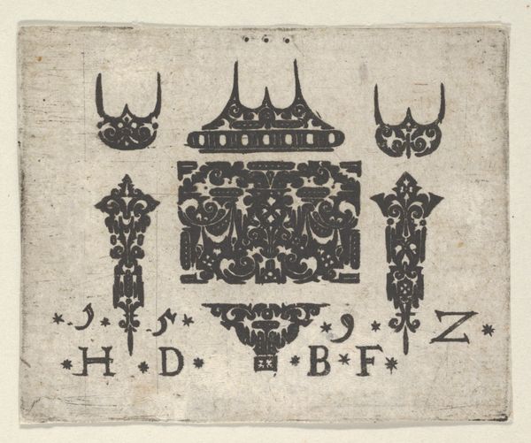 This blackwork print, created by Hans de Bull around the turn of the 17th century, presents a series of ornamental motifs, likely intended for jewelry design. The stylized floral and vegetal patterns, rendered in stark black ink, speak to a broader tradition of decorative arts that flourished during the Renaissance. Note the prominent use of symmetrical arrangements and curvilinear forms, which echo through centuries of design, from ancient Roman friezes to the arabesques of Islamic art. The vertical fillets and curved motifs reappear in different guises across time. Consider the tendrils of the Tree of Life in ancient Mesopotamian art, or the swirling patterns in a Baroque cartouche. Such continuity suggests a collective memory at play, where certain forms resonate with the human psyche, evoking a sense of order and harmony. These patterns, like dreams, tap into the subconscious, revealing our innate desire for balance and beauty. The re-emergence of similar decorative elements across disparate cultures and epochs underscores the enduring power of visual symbols. They transcend their immediate context, resurfacing, evolving, and taking on new meanings as time marches on.