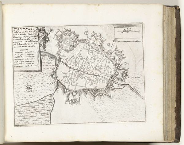 This is an engraved map of Sint-Winoksbergen, made in 1726 by an anonymous artist. The precise, linear quality of the print speaks to the engraver's skill, carefully incising lines into a copper plate. Ink was then applied, and the image transferred to paper under great pressure. This process allowed for the relatively efficient production of multiple copies, essential for distributing knowledge and reinforcing power in the 18th century. The map itself is a fascinating artifact, a tool for control and a symbol of authority. Note how the city is depicted with an emphasis on its fortifications, reflecting the military concerns of the time. The act of mapping transforms space into a commodity, a resource to be managed and defended. Consider the labor involved in both creating the physical map and constructing the city it represents. Both are products of human effort, embedded in a network of social and economic relations. By appreciating the making of this map, we come to see it as more than just a representation, but as a material object with its own history and significance.