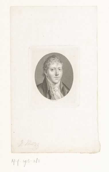 Editor: Here we have Johann Christian Benjamin Gottschick's 1822 engraving, "Portret van Christoph August Tiedge." The paper looks aged, but I find the neoclassical elements – like the framing and the stylized lyre with wings – surprisingly optimistic, almost celebratory. What strikes you most about this portrait? Curator: Well, putting it in its historical context, these portraits were immensely important in constructing celebrity and memorializing figures in the early 19th century. Engravings like these circulated widely, establishing a visual presence for Tiedge. Did he commission it, do you think, or perhaps his literary circle? Editor: That's a great question. I hadn't considered who initiated it. The inclusion of the lyre makes me think it’s related to his poetry, aiming to elevate him as an artist. Curator: Exactly! These portraits weren’t just about likeness; they were carefully constructed images to cultivate a specific public perception. Notice how the wings seem to allude to immortality, while the lyre is not just an object, but a signifier of art itself. What does that say about the public role of artists, or the desired image of the artist, at that time? Editor: It presents the artist as almost a heroic figure. Larger than life. Someone to be remembered. I see a real attempt here to immortalize Tiedge, almost deifying him through these symbolic visual cues. I now better appreciate how staged and purposeful such an image is, which contrasts to the feeling of the casual artwork at first sight. Curator: Precisely. We see the image and the impact the artwork has had to culture at the time and going forward! And thinking about who consumed these images gives us a glimpse into the literary culture of the era. These prints were vital tools to the construction of national cultural icons.