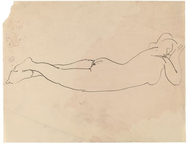 Editor: Here we have Tom Wesselmann’s "Open Ended Nude #44," created in 1973, seemingly in watercolor. It strikes me as both intimate and oddly impersonal. What do you see in this piece? Curator: Well, this is classic Wesselmann! Think about the socio-political climate of the early '70s. The Pop Art movement was critiquing mass media, consumerism, and the objectification of women, yet often perpetuating those very things. Editor: How so? Curator: Wesselmann takes the traditional nude, a loaded art historical subject, and renders it in this cool, detached style, right? What's absent? Facial features, explicit emotion… Editor: It’s true. She's an objectified form almost, devoid of a specific identity or setting. Curator: Exactly! It's a commentary on how women were represented, consumed as images, but the line between critique and complicity blurs. And given his popularity, and the way museums collect and display works like these, that critique can sometimes feel lost, don’t you think? It makes one wonder, does the art world become another layer of that very system it's meant to examine? Editor: That’s fascinating, something I didn’t consider. It makes you think about who controls the narrative and how the message can be twisted over time. Curator: Absolutely. Thinking about how our perspectives shape and change how we see something like "Open Ended Nude" is an active part of seeing art as it reflects cultural values. Editor: I’ll never look at a Pop Art nude quite the same way. Thank you!
