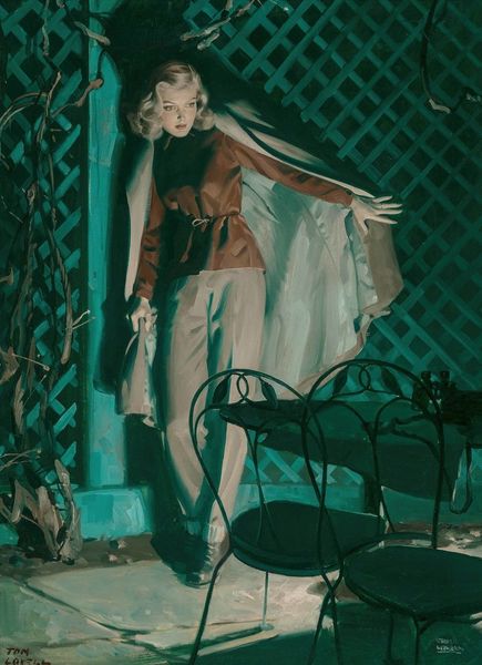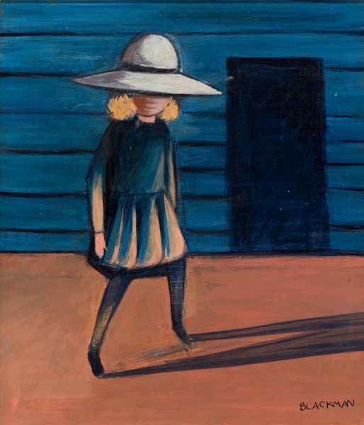 Editor: This is Charles Blackman's "Schoolgirl in a Lane," painted in 1953. It's an acrylic painting, and something about the starkness of the lane combined with the girl's gaze over her shoulder gives it a slightly unsettling mood. What social commentary do you think Blackman might be offering here? Curator: The Schoolgirl series, placed against the backdrop of post-war Australia, invites an analysis beyond a simple portrait. Blackman’s own anxieties and perhaps even societal fears around childhood are palpable. It's essential to consider the public's perception of childhood innocence during this era, particularly how it contrasted with emerging social anxieties. Does this contrast inform your understanding of the "unsettling mood" you perceived? Editor: Absolutely, that context really shifts things. The uniformity of the fence and the narrowing lane now feel less like simple setting and more like a visual metaphor for the restrictive expectations placed on young women at the time. Did Blackman face any specific criticisms or praise for this depiction when it was first exhibited? Curator: Indeed. The reception was mixed, precisely because it disrupted idealized notions of childhood. Some lauded Blackman for his realism and unflinching portrayal of psychological states, while others criticized what they perceived as a pessimistic or even sinister perspective. How does understanding the initial reactions to the painting change how you understand it now? Editor: I see it as more courageous now, actively participating in the cultural conversations around the changing roles and expectations of young girls. Thank you! Curator: And I find myself pondering the responsibility artists have in shaping or reflecting societal anxieties, and what the ethics are for representing children this way. It's fascinating how art forces us to confront uncomfortable truths.