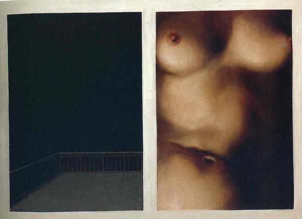 This Rene Magritte at the Menil Collection, is a painting made up of oil on canvas. Magritte had a knack for making you question everything you thought you knew about seeing. In this piece, he breaks down the human form into these… well, framed sections. Each part so meticulously rendered, almost like a classical study, but then, wham! They're floating in this void of black, refusing to add up to a whole. The creamy, almost fleshy tones of the body parts against the stark black is kinda jarring, right? Like a spotlight on our fragmented selves. It makes me think about how we construct identity, how we piece together our understanding of ourselves and others from fragments of information. Maybe he looked at Giorgio de Chirico. Magritte’s not giving us any easy answers, just endless, beautiful, confounding questions.