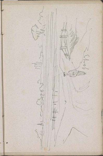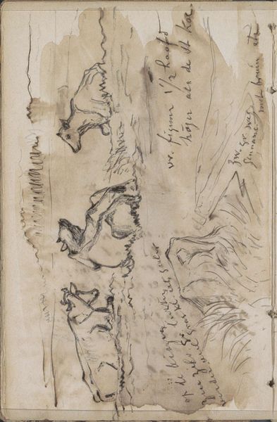 Editor: This is Niels Larsen Stevns' "Kompositionsudkast til Knytlingesagaens fortælling om Knud den helliges udsendinge i Vendsyssel, Astråd og Svend, notat," from between 1932 and 1935, rendered in ink on paper. It’s quite a dynamic sketch; almost chaotic. What do you make of this work? Curator: As a sketch, the focus shifts to the artist's process itself. The labor involved in visualizing the narrative is evident in each stroke. It isn't about illusionism here, but about Stevns working through his understanding of the saga’s material realities: travel, conflict, the sheer physicality of these events. Do you see how the rapid, repetitive lines suggest a kind of churning, restless energy? Editor: Yes, the lines really do convey movement! It almost looks like a storm or some kind of violent struggle is taking place. Curator: Exactly. And think about the availability and cost of ink and paper during that time, influencing the immediacy and rawness of the piece. Stevns wasn’t trying to create a finished product; he was using readily available materials to grapple with a story about power, faith, and potentially, resistance. How might the act of sketching itself be a form of engagement with these themes? Editor: I guess that the materials allowed for more spontaneous reactions compared to painting. Also, sketches might be more accessible to ordinary people? Curator: Precisely! A sketch like this brings the grand narrative down to a more human scale, emphasizing the labor of artistic creation alongside the events depicted. The means of production inform the message itself. Editor: I never thought about a sketch having such a connection to real-world production. I suppose it is the rawness, both narratively and visually, that stands out the most now. Thank you. Curator: Indeed! Recognizing how materials and methods intertwine with the social context is key to appreciating the piece.
