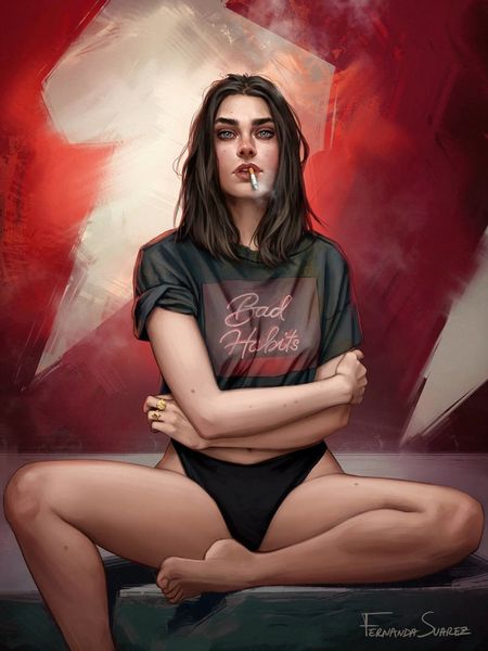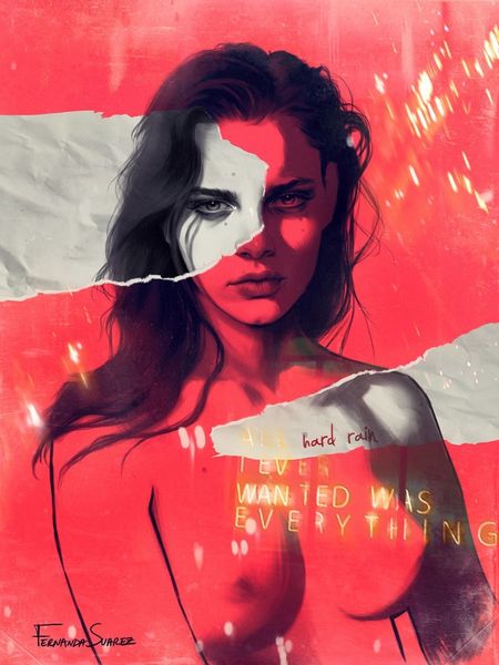Fernanda Suarez created "Heart Made of Stone," a digital painting which explores themes of emotional resilience and identity in the modern world. The artwork presents a portrait of a woman, her face partially obscured by what appears to be torn paper or perhaps broken glass, with a fiery glow emanating from the cracks. Suarez delves into the complexities of female identity, especially the weight of societal expectations around emotional expression. The title itself suggests a defense mechanism, a hardened exterior formed perhaps as a response to vulnerability. The fiery imagery and destruction surrounding the figure imply a personal struggle or transformation. Suarez's portrait invites us to reflect on how individuals navigate adversity, and whether the idea of a "heart made of stone" is a symbol of strength, or a barrier to genuine connection.