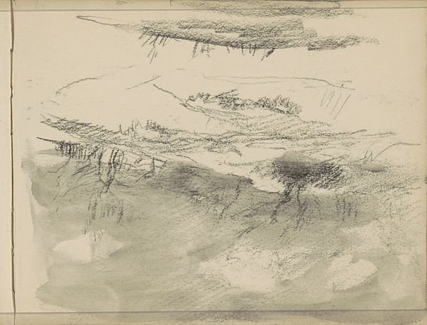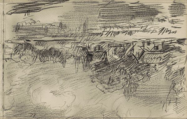 Editor: Here we have Johan Antonie de Jonge's "River Landscape with Sailing Ships," a pencil drawing from 1909. The sketch feels very transient, like a quickly captured memory. What strikes you when you look at this work? Curator: Immediately, I’m drawn to how the artist uses very minimal marks to suggest movement and vastness. Do you notice how the horizontal lines dominate? It's not just about depicting a river, but also about conveying a sense of enduring flow. These simple lines tap into centuries of association: rivers representing journeys, transitions, the passage of time itself. What emotional impact do you think that horizontal emphasis has? Editor: I see what you mean. It feels calming, almost meditative. The horizontal strokes make me think of stillness, a slow current. The boats on the river… are those symbols too? Curator: Absolutely. The sailing ships, rendered so simply, echo the concept of a journey and exploration but, more importantly, cultural connectivity and commerce. Vessels have, since time immemorial, brought distinct populations into dialogue. Consider how often the motif appears in art across cultures – from ancient Egyptian tomb paintings to contemporary works. The image of a boat speaks to the human need to traverse, to discover. De Jonge employs a light pencil to suggest it with very delicate emotional charge. What does it suggest to you about Dutch identity in 1909, for example? Editor: I hadn't thought of it like that before, but now it brings to mind Holland's rich maritime history, its position as a major trading power… So even a quick sketch can carry a lot of cultural weight. Curator: Precisely. And it encourages us to consider the weight *we* bring to it: what we see here, is coloured as much by our knowledge as it is de Jonge's cultural history. Editor: I will certainly look at landscape art differently.