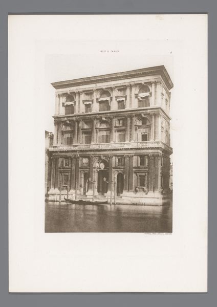 This anonymous artwork presents a view of the Palazzo Vendramin-Calergi on the Grand Canal in Venice. The print captivates through its detailed rendering of architectural forms, the classical structure, and the monochrome palette that evokes a nostalgic atmosphere. The composition is structured around the Palazzo's symmetrical facade, emphasizing the horizontal tiers of windows and decorative elements. Note how the artist uses line and form to define the architectural space. The palazzo's reflection in the canal adds depth, creating a play between the solid structure and its fluid counterpart. The structural clarity echoes the Enlightenment's emphasis on reason and order, while the romantic treatment of light and shadow hints at the picturesque aesthetics. The artwork invites us to consider how architecture embodies cultural values and historical narratives. It functions as a signifier of Venetian identity, inviting ongoing interpretation and re-evaluation within the continuum of art history.